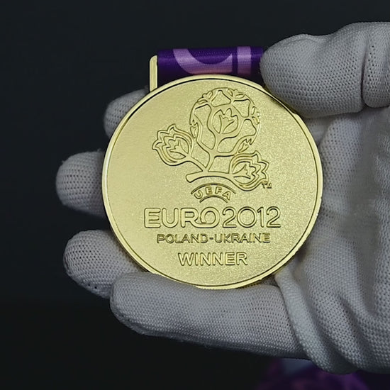 Celebrate Spain’s historic defending victory at UEFA Euro 2012 with this collectible replica medal. A must-have for football fans and sports memorabilia collectors.